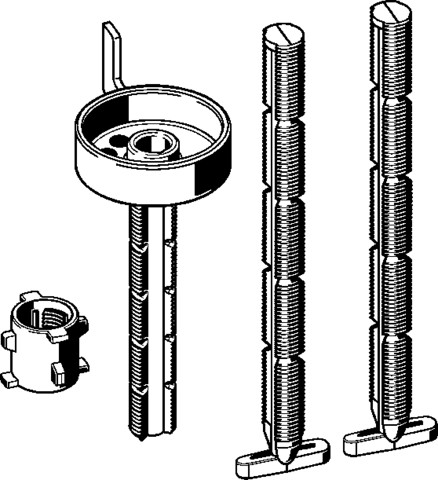 Zestaw prętów uruchamiających. Przeznaczenie: przyciski uruchamiające do pisuaru Prevista, tworzywo sztuczne, ręczne spłukiwanie od przodu. Wyposażenie: Pręt uruchamiający, zestaw sworzni mocujących, nr wzoru 8580.71, nr kat. 806 149,