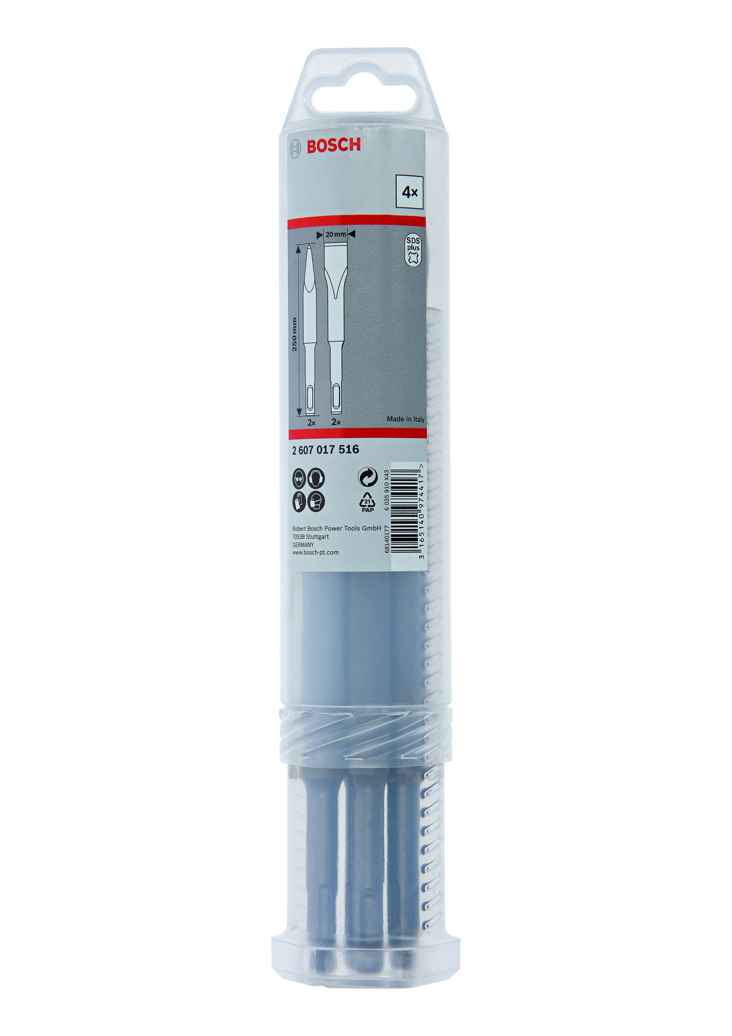 Zestaw dłut SDS plus, 4 szt. 4pcs SDS plus chisel set: 2 pointed chisels 250mm, 2 flat chisels 250mm