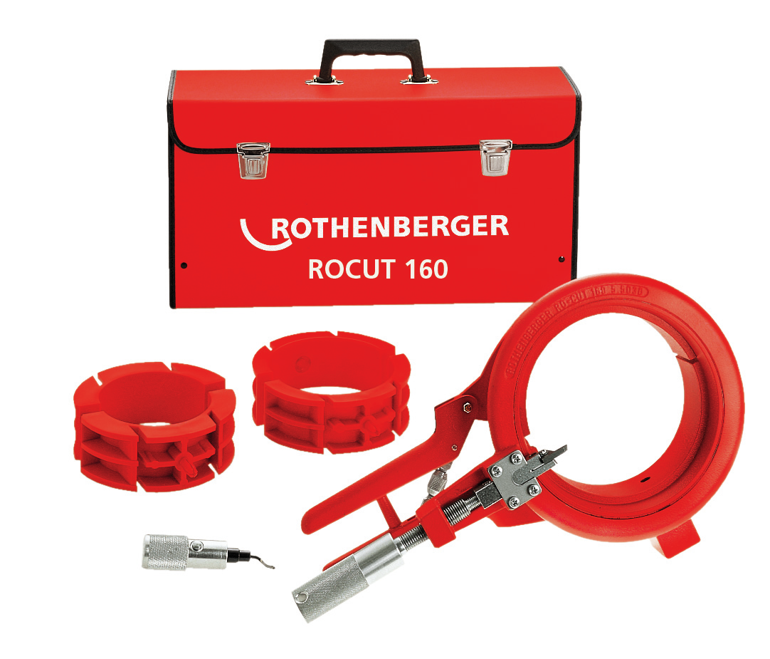 ROCUT 160 może być używany do cięcia i fazowania rur z tworzywa sztucznego w jednym kroku. Prosta i bezpieczna obsługa. Praktycznie przechowywany w plastikowym opakowaniu.