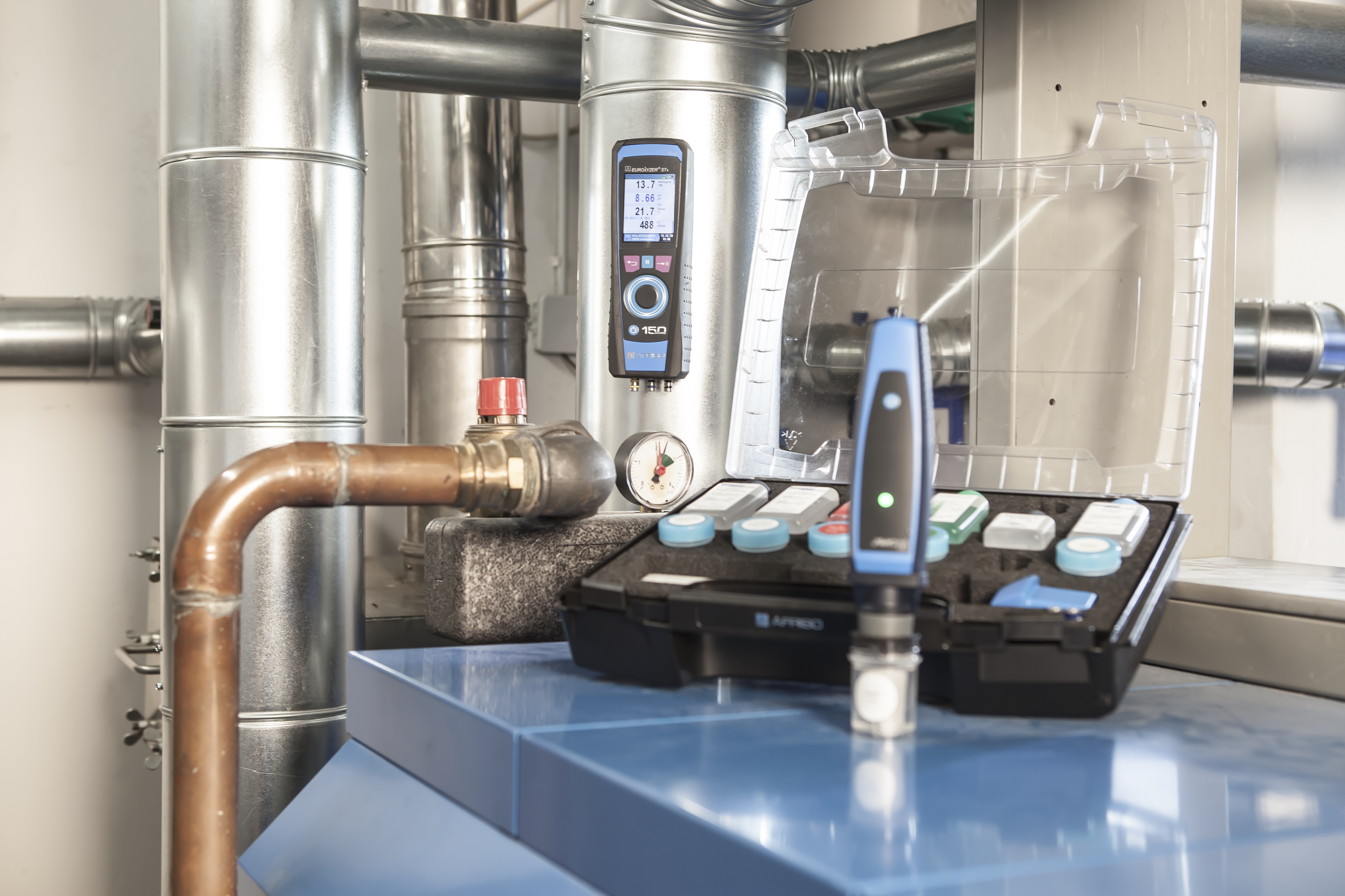 Określa jakość wody przy użyciu parametrów mierzonych: pH, przewodność elektryczna, temperautra oraz parametrów obliczanych: stopień twardości, zasolenie, TDS.Zapobiega uszkodzeniom w instalacjach wodnych spowodowanych przez korozję.