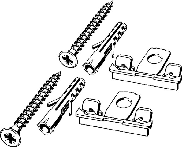 Advantix Cleviva-odpływ liniowy - zestaw mocujący. Wyposażenie: Uchwyty, śruby mocujące, kołki z tworzywa sztucznego, nr wzoru 4981.89, nr kat. 797 003,