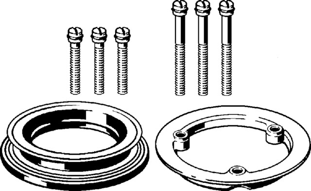 Zestaw montażowy. Przeznaczenie: Rotaplex, Rotaplex Trio. Wyposażenie: Kołnierz mocujący, uszczelka profilowana, śruby mocujące, poz. rys. 5, nr wzoru 6142.91, nr kat. 575 403,