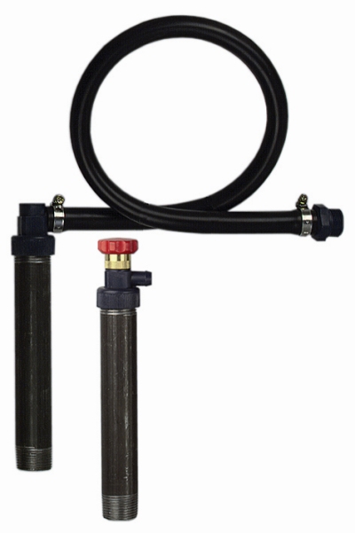 W zestawie: zawór kontrolny z końcówkami do przyłączenia węża, drobne elementy łączeniowe potrzebne do montażu detektora wycieku, 2 metalowe rurki G1" o dł. ok 20 cm (jedna służy do przyłączenia zaworu kontrolnego do zbiornika, druga do przyłączenia węża giętkiego),wąż giętki o dł. ok 80 cm do połączenia zbiornika z pojemnikiem na ciecz detekcyjną,zawór kontrolny, elementy przyłączeniowe do węża x 2, zaciski oraz uszczelki,