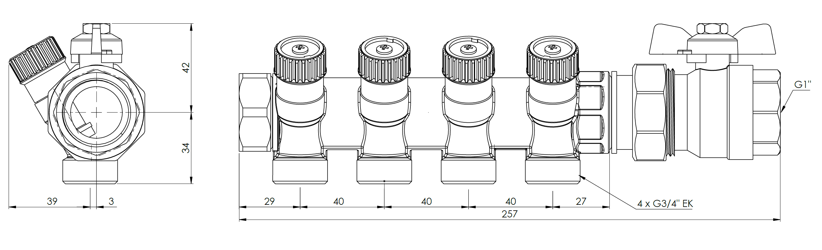 Zestaw podstawowy rozdzielacza do wody użytkowej ADM 214, G1'', 4 punkty poboru
