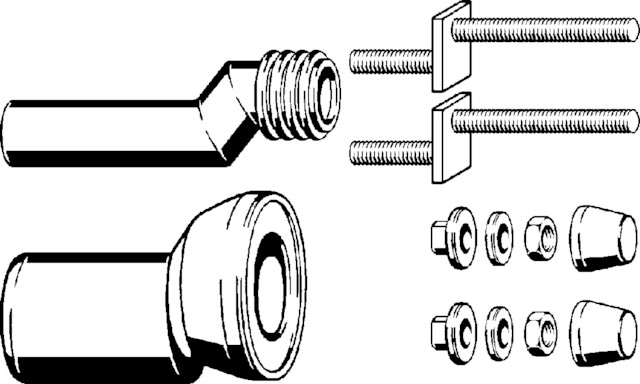 Zestaw przyłączeniowy. Przeznaczenie: element do wyrównania wysokości do 25 mm, tworzywo sztuczne. Wyposażenie: Rura spłuczkowa z uszczelką, króciec przyłączeniowy z uszczelką wargową, sztangi gwintowane. Wskazówka: Bez gwarancji; może prowadzić do zredukowanej, niezgodnej z normą wydajności spłukiwania i odpływu!, nr wzoru 8094, nr kat. 344 382, DN: 90