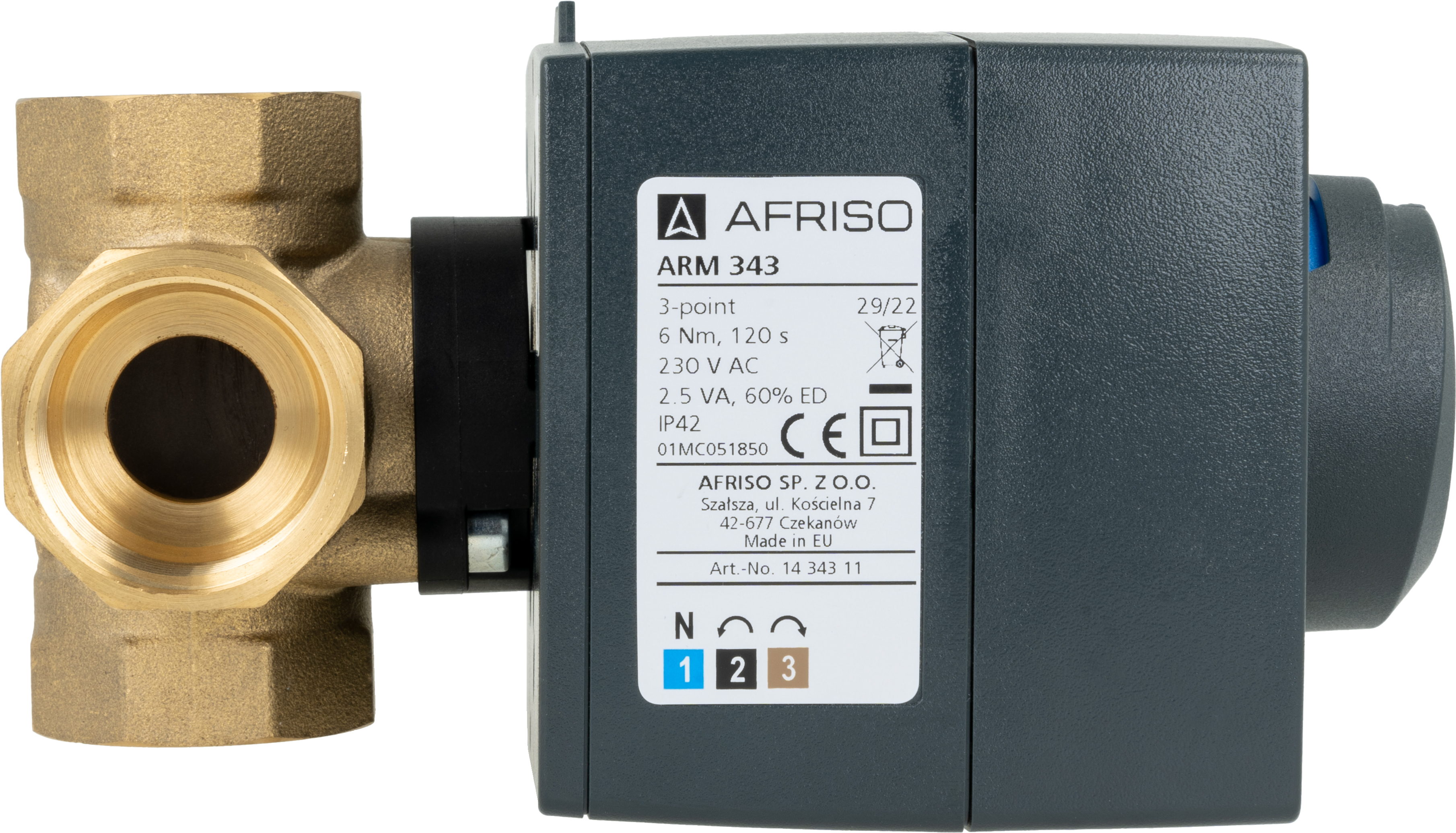 Zestaw regulacyjny ProClick: 4-drogowy obrotowy zawór mieszający ARV 484 ProClick, DN25, Rp1'', Kvs 9 m3/h + siłownik elektryczny ARM 343 ProClick