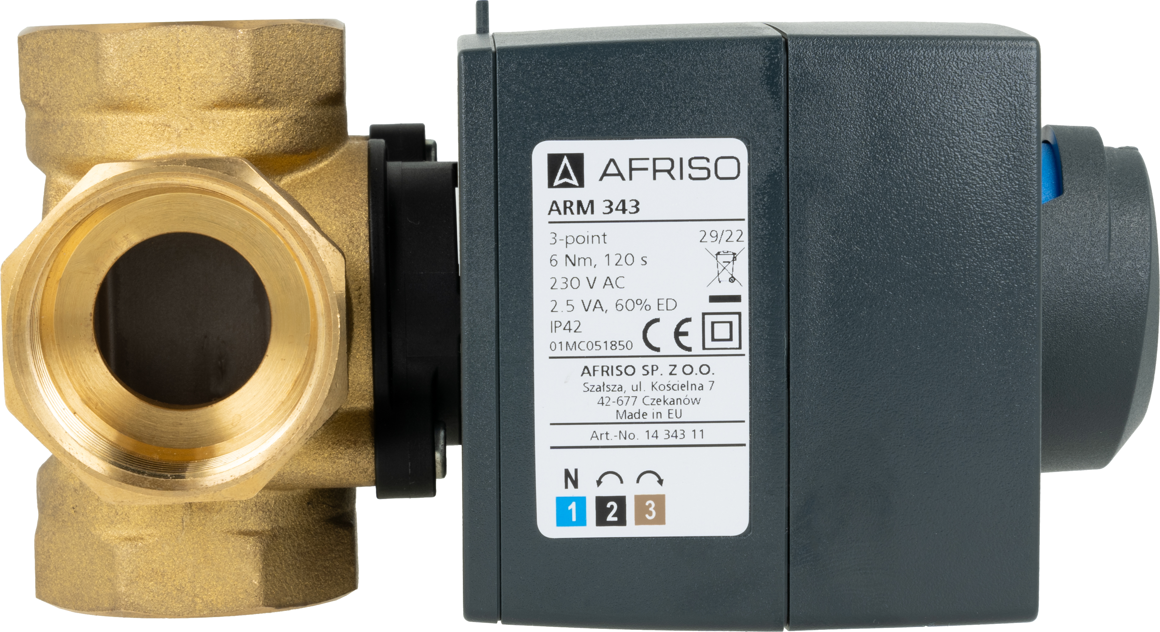 Zestaw regulacyjny ProClick: 4-drogowy obrotowy zawór mieszający ARV 485 ProClick, DN32, Rp1 1/4'', Kvs 18 m3/h + siłownik elektryczny ARM 343 ProClick