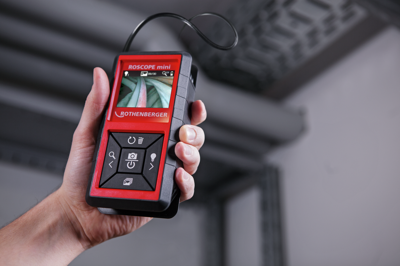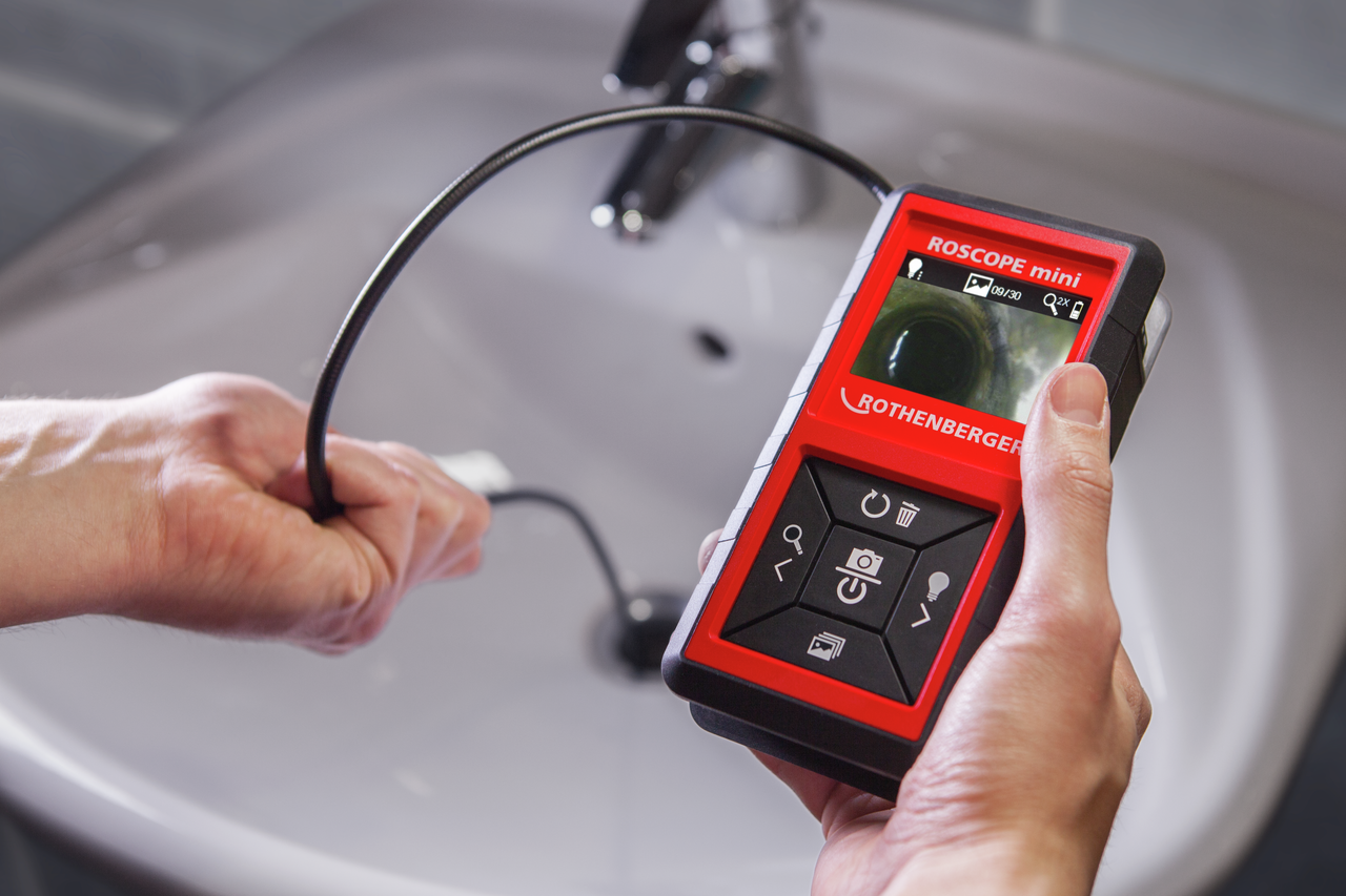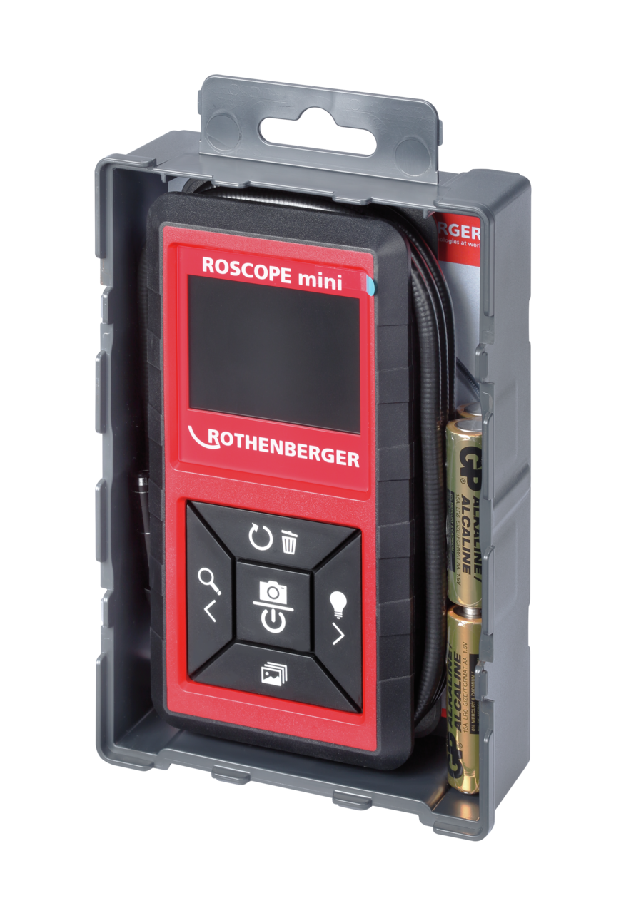 ROSCOPE mini jest stałym towarzyszem hydraulika - czy to na pasku, czy w skrzynce narzędziowej. Małe instalacje nie stanowią żadnego wyzwania, takiego jak szybka inspekcja syfonu, przyłącza prysznicowego lub inspekcja pustych przestrzeni pod kątem nowych instalacji. Połączenie najnowocześniejszej technologii, solidnej konstrukcji i kompaktowej konstrukcji sprawia, że ROSCOPE mini jest niezastąpiony w każdej torbie narzędziowej.