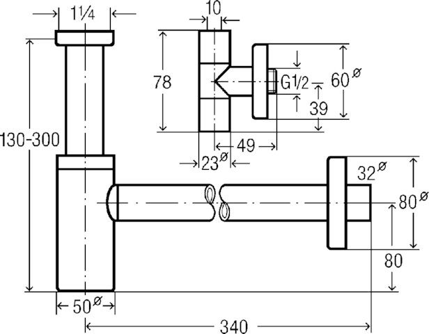 Zestaw syfonu butelkowego VIEGA 57884 (akcesorium) do umywalki do podwieszanej miski WC do bidetu mosiądz (chromowanie) g 1 1/4'', dn 32