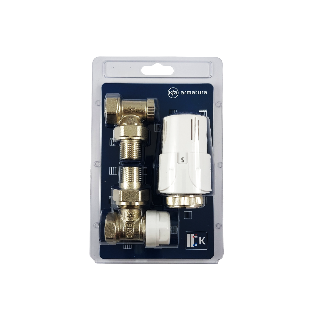 Zestaw termostatyczny grzejnikowy, kątowy, biały, dn15 (1/2'')