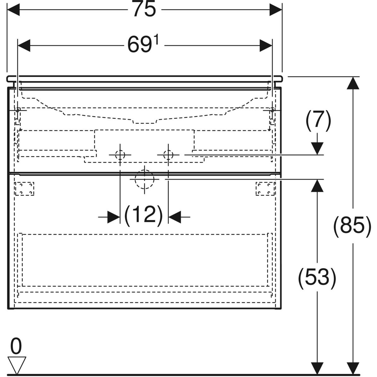 Zestaw umywalki meblowej Geberit iCon slim rim, z szafką pod umywalkę, z dwoma szufladami i zestawem odpływowo-przelewowym do umywalki: B=75cm, Umywalka: biały, Korpus i front: biały / lakierowany matowy, Uchwyt: biały / powlekany proszkowo, matowy