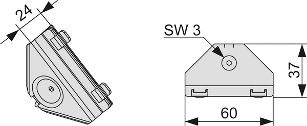 Łączniki narożne do trwałego, narożnego łączenia z kształtownikami TECEprofil; zmontowana jednostka ze stali ocynkowanej; śruby sześciokątnej M 5 (SW 3) i sprężyny naciskowej.