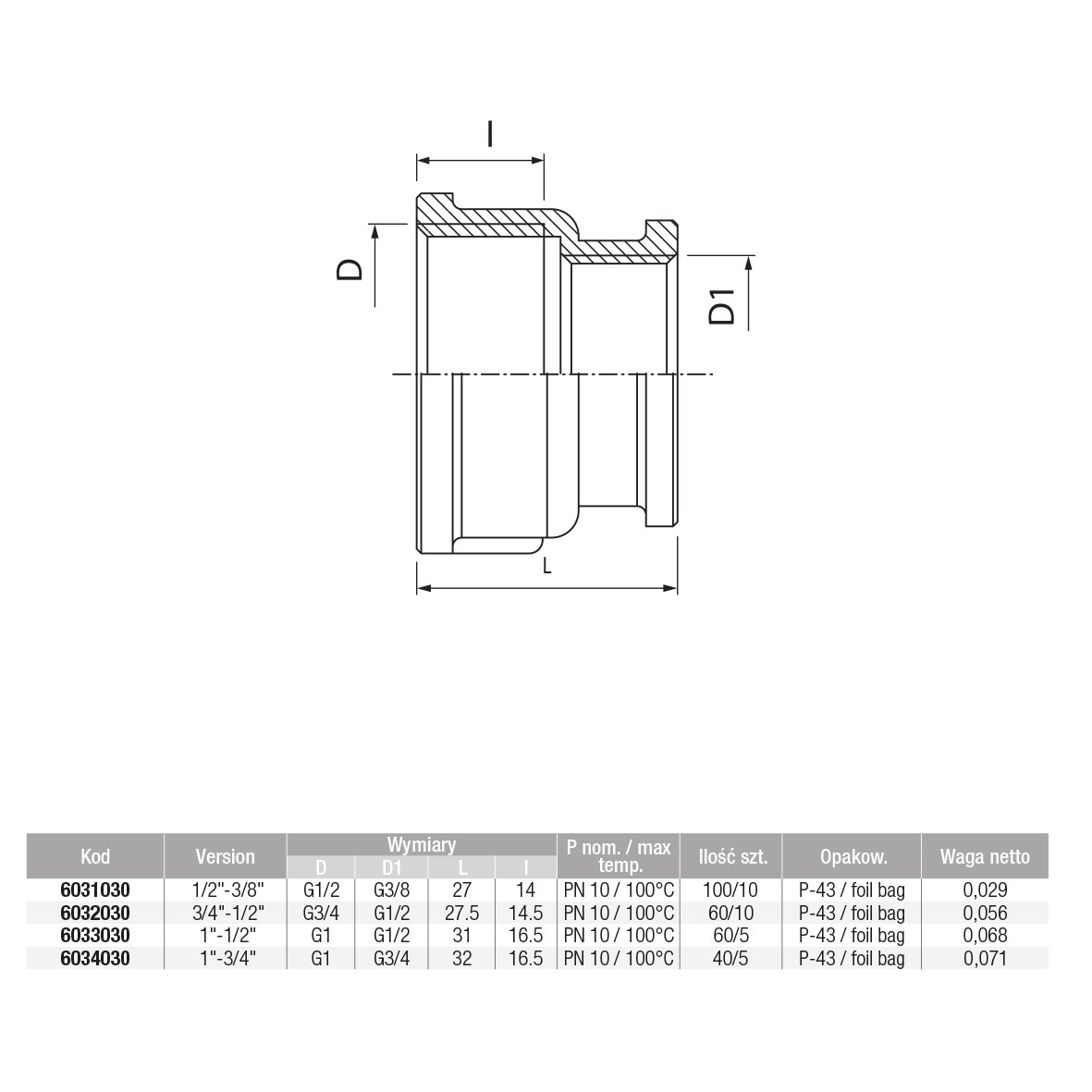 Złączka nakrętna redukcyjna śrutowana VALVEX TWIST, 1/2'' x 3/8'' (GW x GZ)