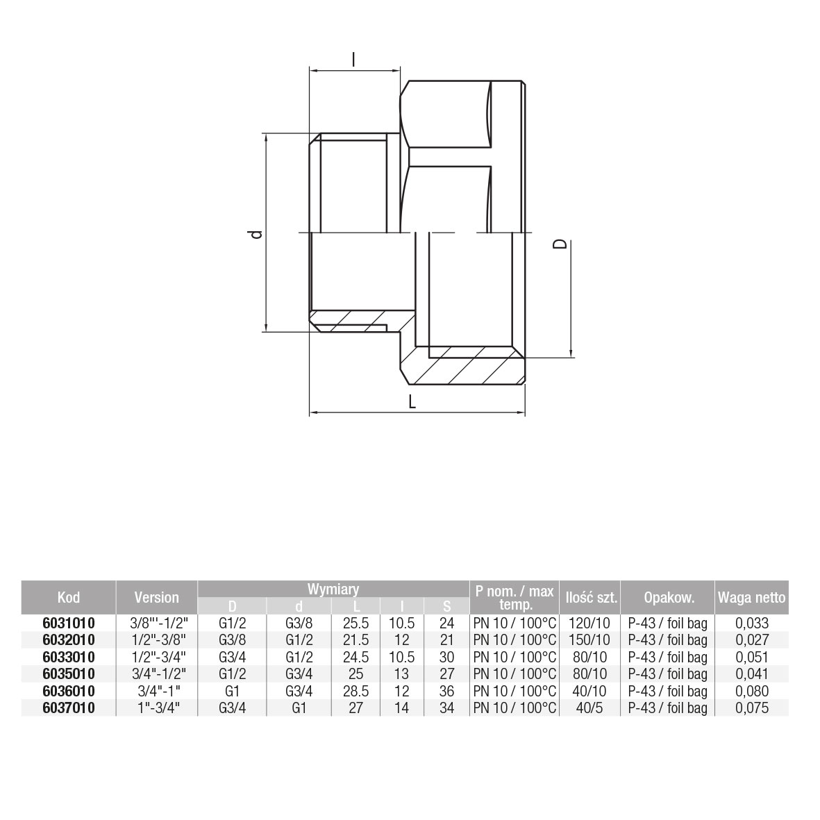 Złączka nakrętno-wkrętna redukcyjna śrutowana