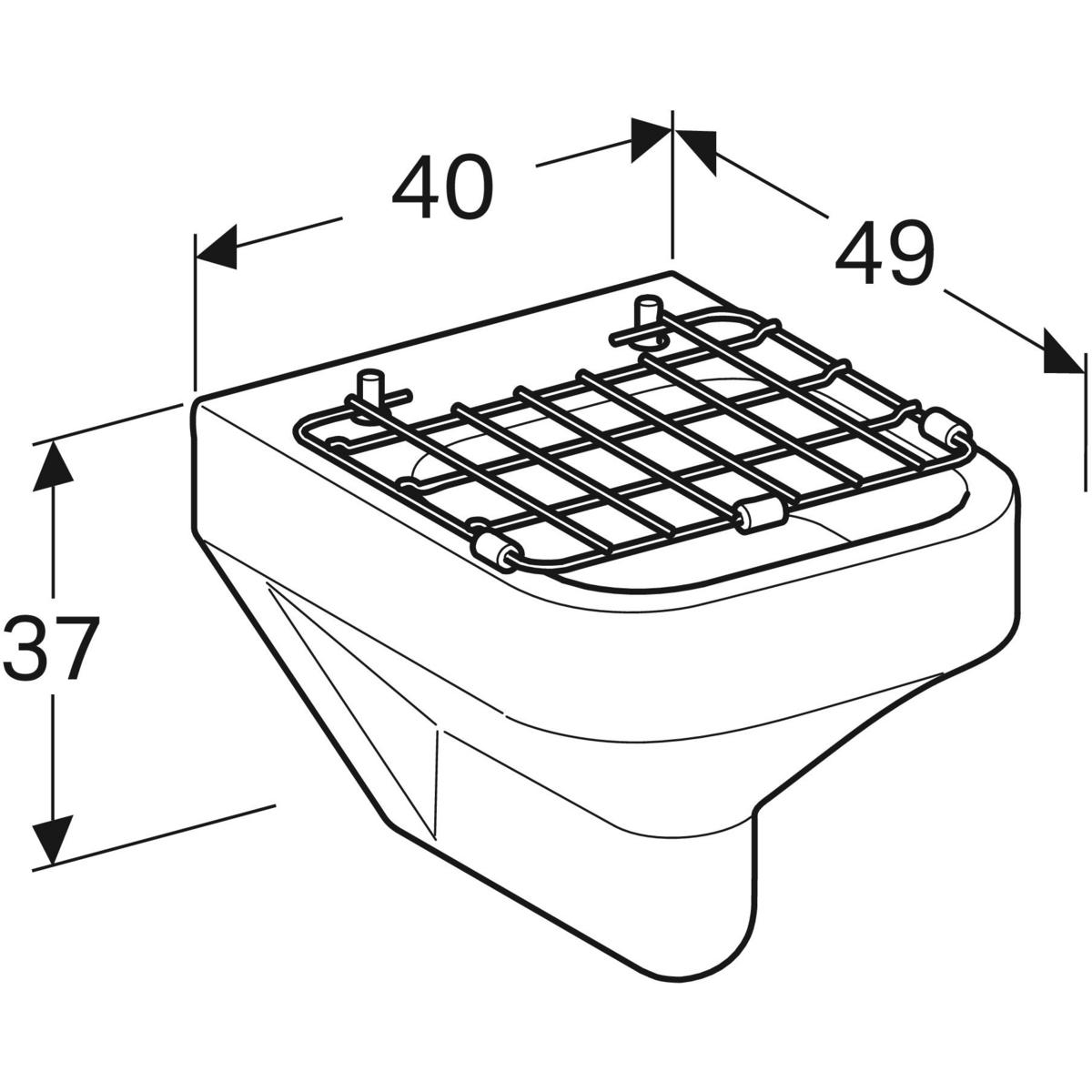 Zlew Geberit Publica z kratką uchylną i sitkiem odpływowym: 40x37x49cm,